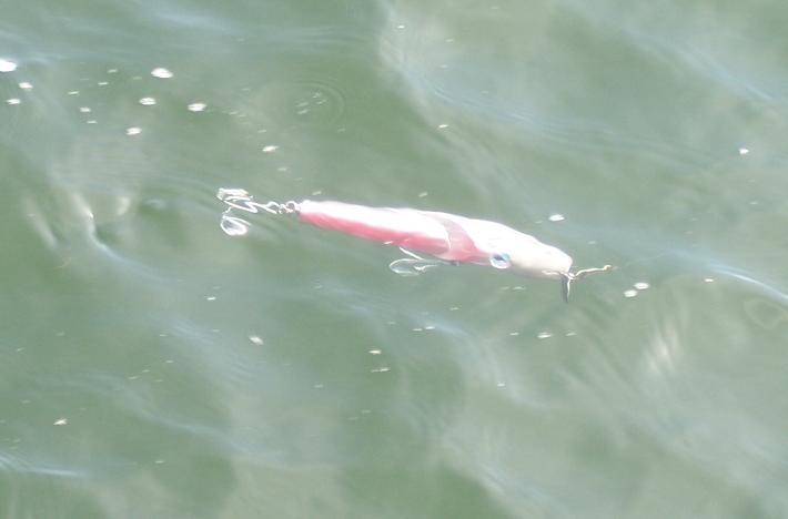 Some were curious about how my jointed Danny and "Prey" swim as I had not had them in the water yet! Well.....after the first day of swim testing they both swam quite nicely.....particularly the Danny as it swam beautifully and left a heck of a nice v-wake behind it! The "Prey" swam great but I am going to make a few adjustments and test them a bit more! Its always fun testing something new and it was great just making a few casts! I had an assistant today in Swimmer........then we went back to me shop and I gave Swimmer some pointers on air brushing! Great way to kill a few hours today Frank.....hope I helped a little?