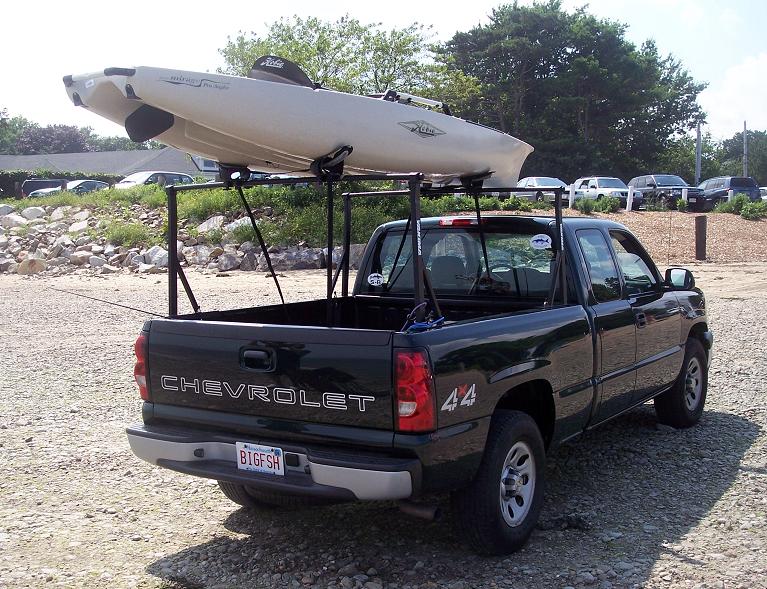 Bought brand new last July and used a half dozen times! It just does not suit my super heavy Pro Angler kayak so I need to sell it and buy a small trailer! Will fit most full size trucks! 60" bars, 2 sets of Mako saddles and 1 set of Hulley Rollers.....$350 firm! You pick up or could meet!