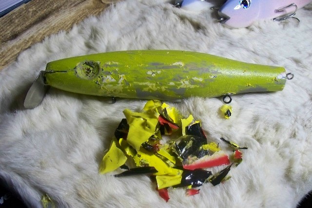Ive had this plug 3 years, it has a hand made lip, an HAD CUSTOM PAINT on it, I picked it up the outher day an the PAINT was LIFTING all over. never been in water, or left the house. I PEELED the paint as you can see, an now is hanging. I plane on repainting it BUTif I cut the wire pull the LIP can I get some one to RE-WIRE it I cant Im just a HandCarvin Screew eye guy. if you can do IT please post an Ill pull everything an SAND ,PRIME, an RE-PAINT OR if you would like to give it a custom airbrush job your self, that would work also. Im up for anything.