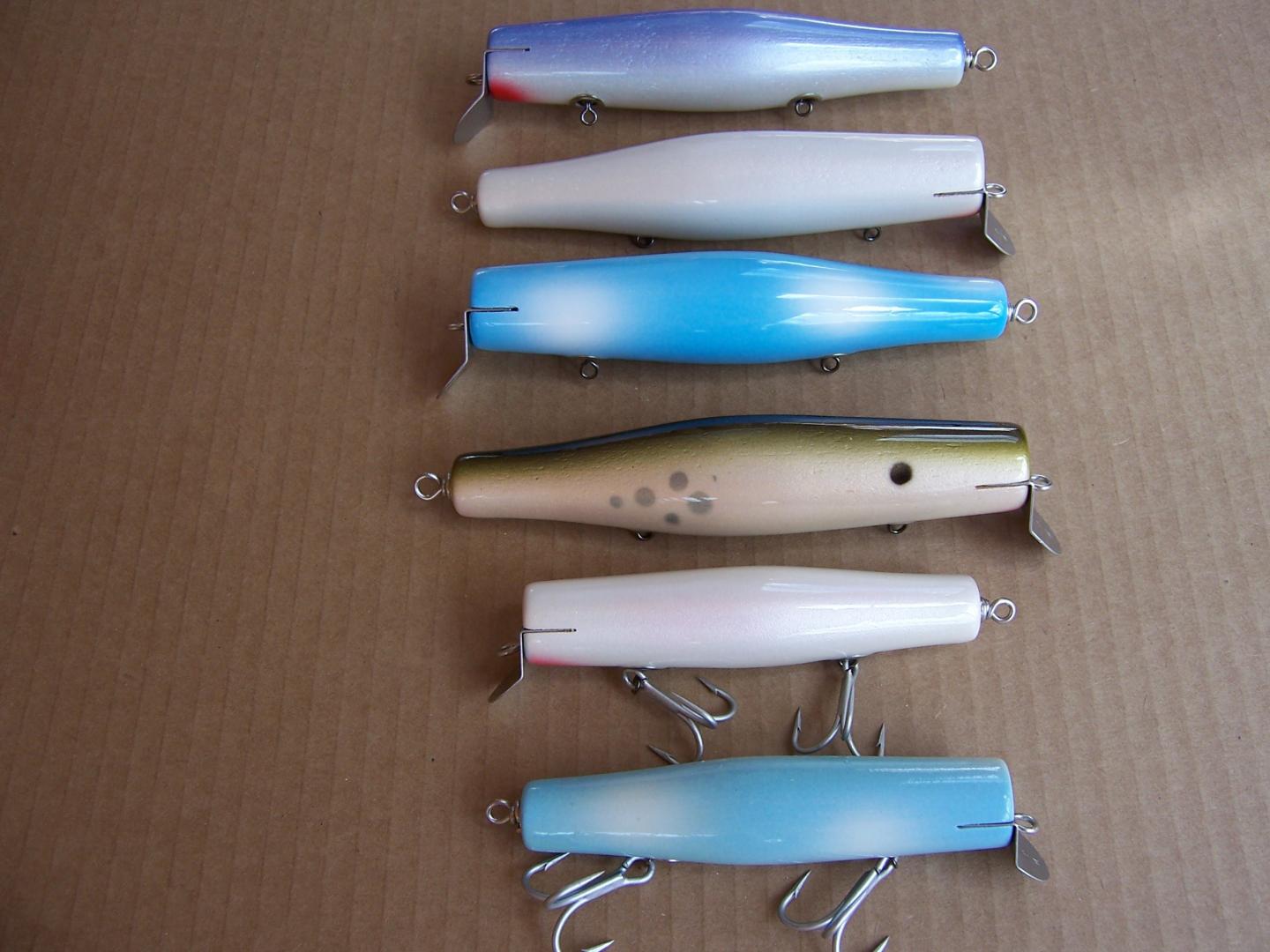 Some small Eely's Beachmaster copies then some of the regular size ones top three are Pichney copies and 4th one is a Beachmaster copy. Lip is the difference shape is the same. Then some older style Beachmaster dannies and 2 small Pichney dannies which I look forward to using this year. Picture makes them look fatter than they are in real life.