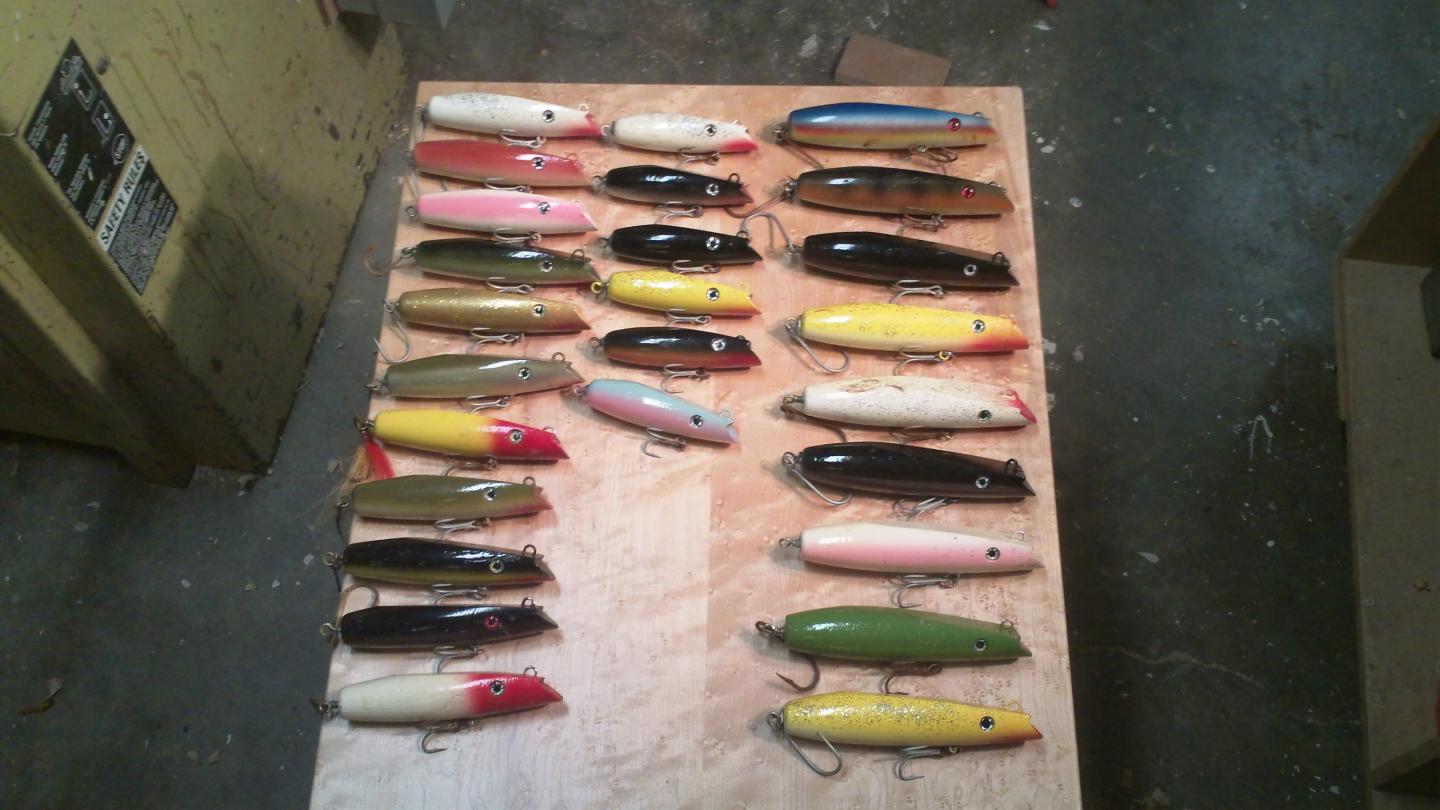 eleven 2.5 oz darters six 1.75 oz darters and nine 3.5 oz darters. most are used sparingly,some rust on hooks as a lot only for now 185.00 shipped