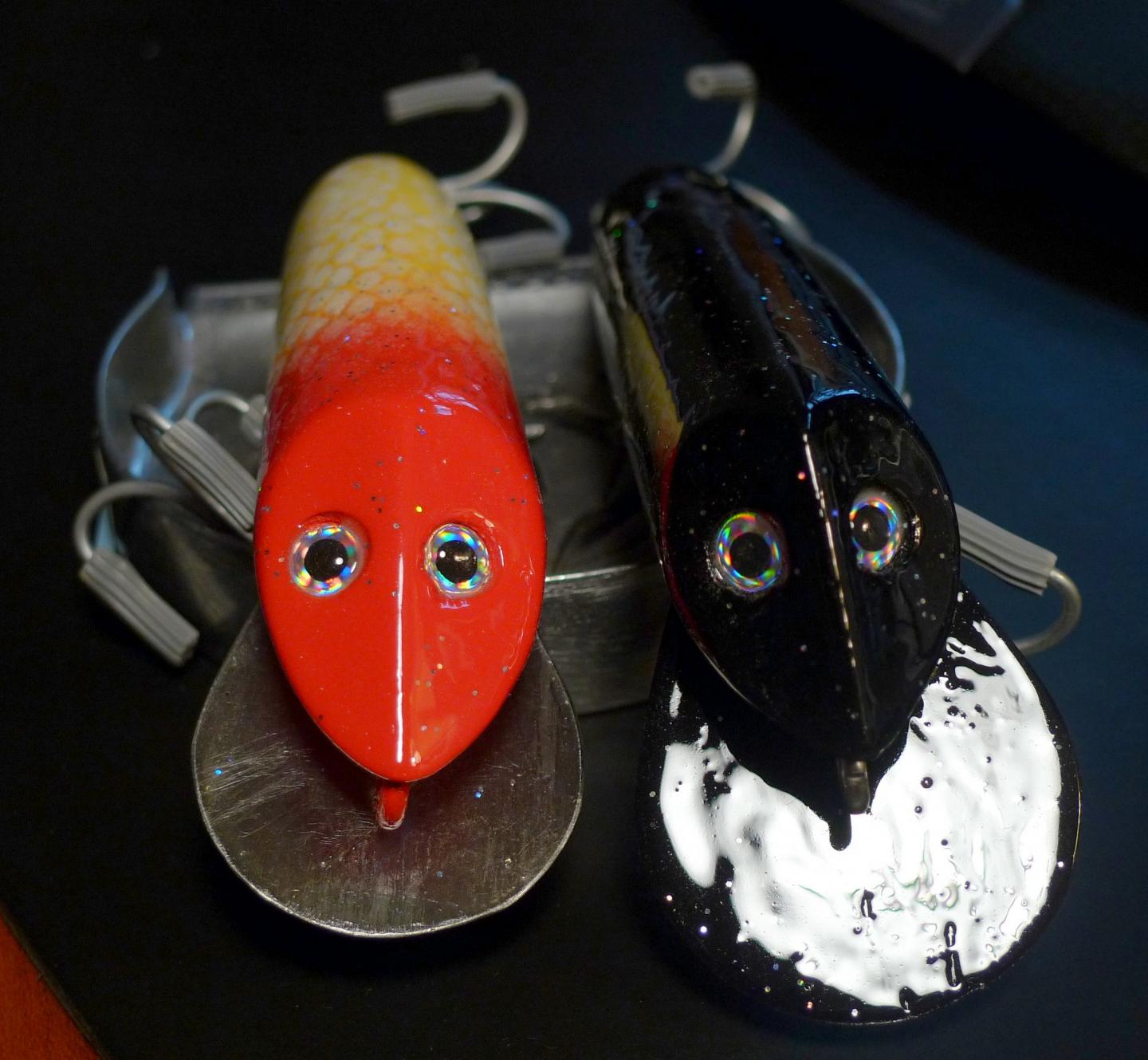 So I kinda modeled these after a Heddon Vamp but with straight (non-cupped lips) Both are made from WRC and have a slug of lead about 1/2 way back in the belly.