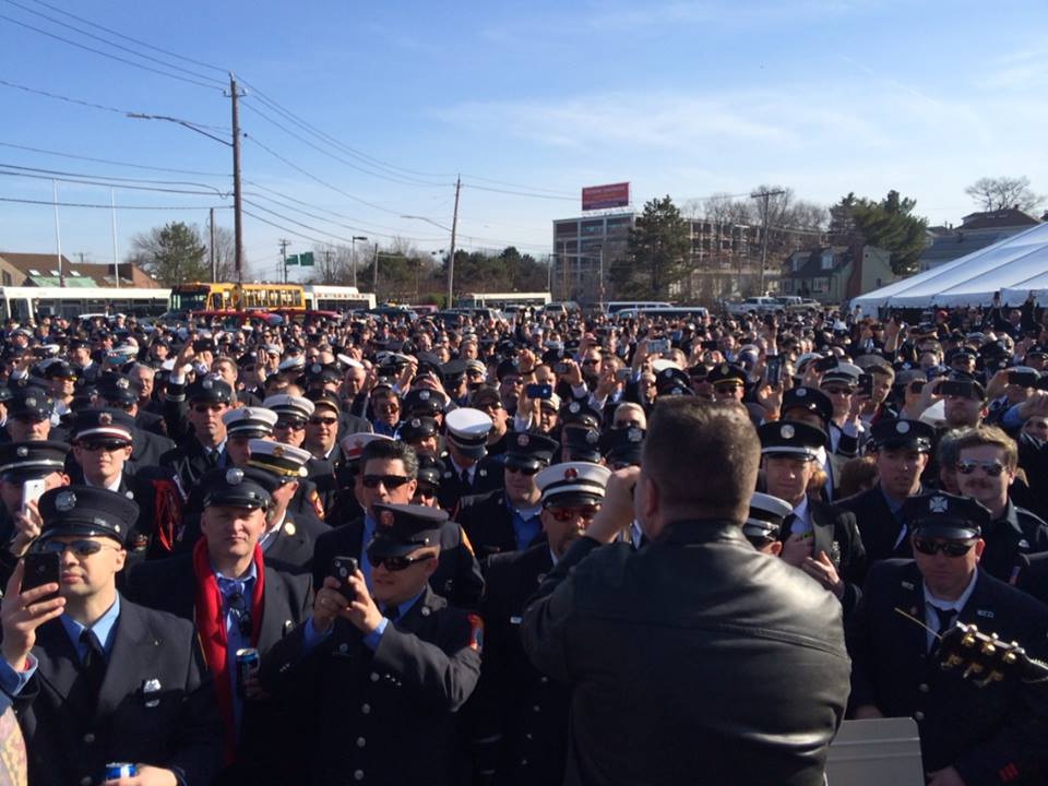Today myself and about 60 other members of my department went to Boston to pay our final respects to Firefighter Micheal Kennedy. What an amazing job the Boston fire Dept did putting together a perfect tribute to a well respected firefighter. After the ceremony they extended the day over at Florian Hall (Local 718 union hall). When we arrived at the hall the Drop Kick Murphy's were all set up and ready to play. It was a cool tribute to Micheal.