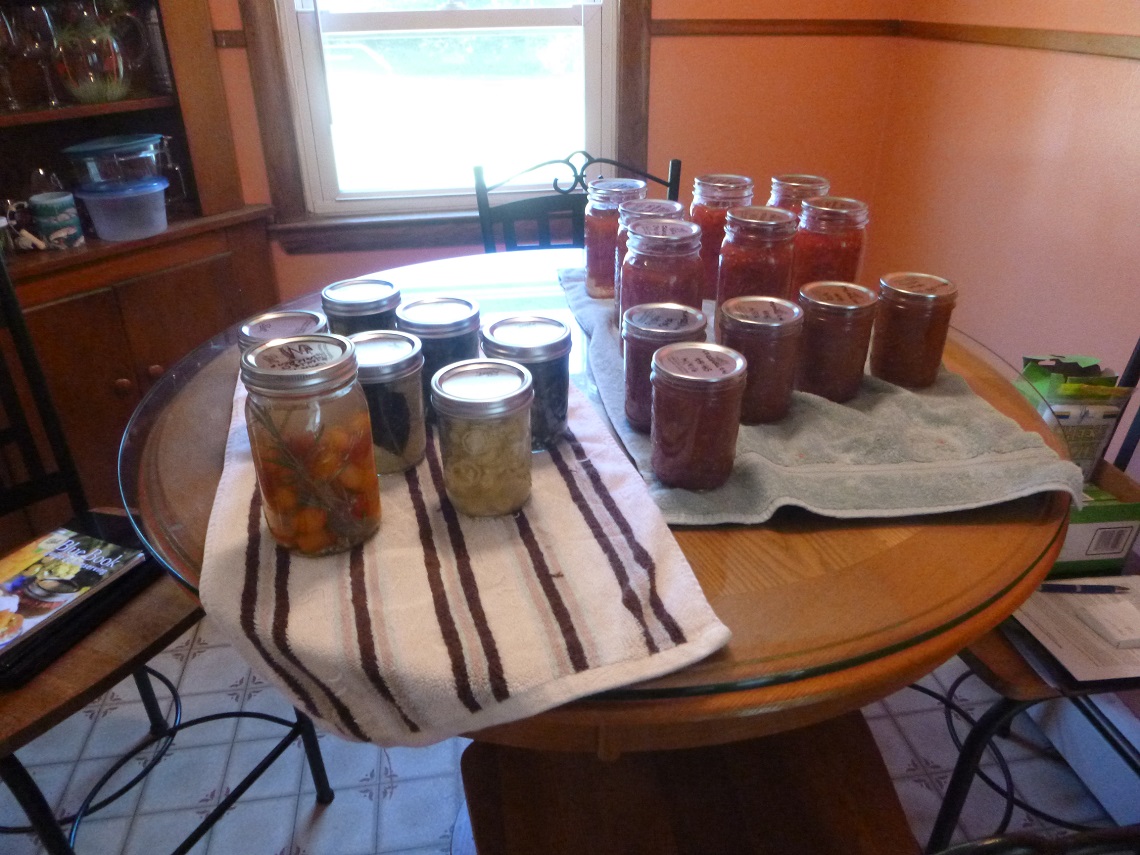 I jarred up 32 jars of homemade salsa 8 jars of Marinara from garden tomatoes.....that was the only high point though.