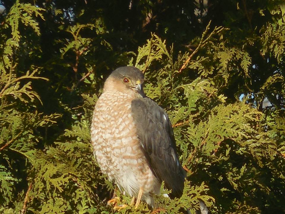 First casualty from the new bird feeder....red tail hawk pounced on a dove...tried to take picture to far away....