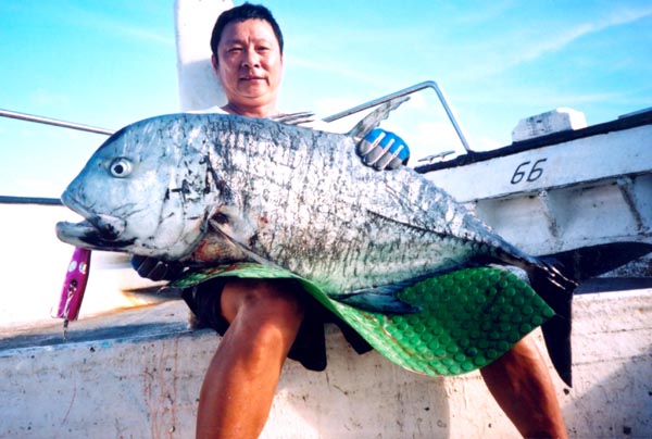 its a Giant Travelly on top and a Dogtooth Tuna on the bottom... both look like mean fish to catch on top...