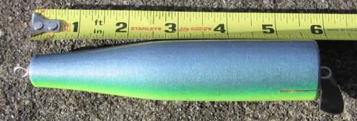 I made one a couple of weeks ago, Pinchney with a slope head. Made out of poplar, about eight inches long, with a #3 pikie lip, a little weight in center. Floats and with a slow retrieve it leaves a wake like a motorboat. I'll have to wait till next year to see if it catches