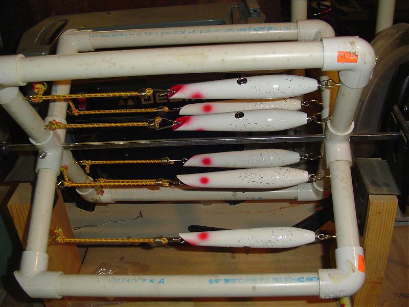 The bungee idea works great for loading different size plugs. On the far end of the plug spinner I mounted a PVC end cap with three thumb screws so i can use it to spin rods while the epoxy cures.....works pretty good.