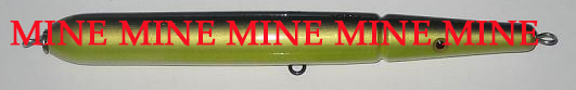 Odds and ends type stuff. The top and bottom fire tigers have been posted before and are included for size reference. The three middle plugs are new. One is a standard size BM 2.5oz skin needle, the other downsized Hab and BM wadd knockoffs...... to use for little fish when I go to Flap's spots.