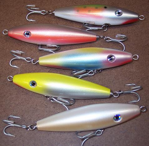 I will have a bunch of BigFish Pencil Poppers on hand in 3 sizes, 1 oz., 1 3/4 oz., and 2.5 ounces! Give these pencils a try and I think you will find they cast a mile and the action is "spook like" and the fish CRUSH these! Many colors available!