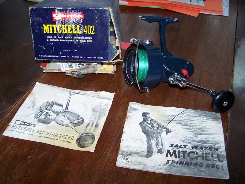 I have a Mitchell 402 spinning reel that I picked up at a yard sale this summer. Has the original manual / box. In good solid condition w/ a little pitting here and there. Looking to get $50.