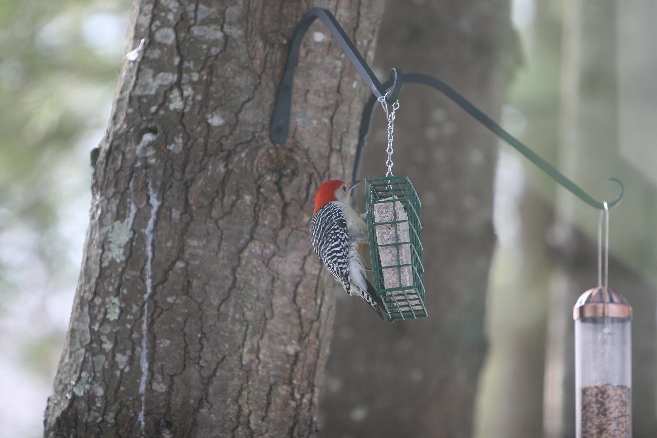 For your suet, the best holders are those lobster trap bait bags that litter the beach. I've got a stash, want me to drop some by Dan's? I'm headed down this week (and only 3 weekends until I open the cottage and get my feeders there going!)
