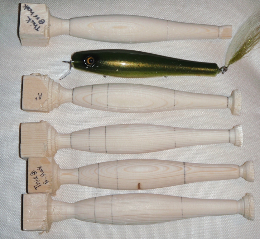 Morning all. haven't been doing plug turnings yet. As some might know I've been busy starting a hobby/business turning wooden baseball bats. my son & I been making turning models out of original models. Coming along nicely but there is so much to learn about wood, grain and the dreaded variables. I have request for stubbys. I have the dupe ready to go for a run. If time allows I will hand spin a large pikie sub swimmer. Once I get a shape that I like i will make up a template. SGT. STRIPER, nice looking paint on those plugs. GOOGOOs like sweeeet!!