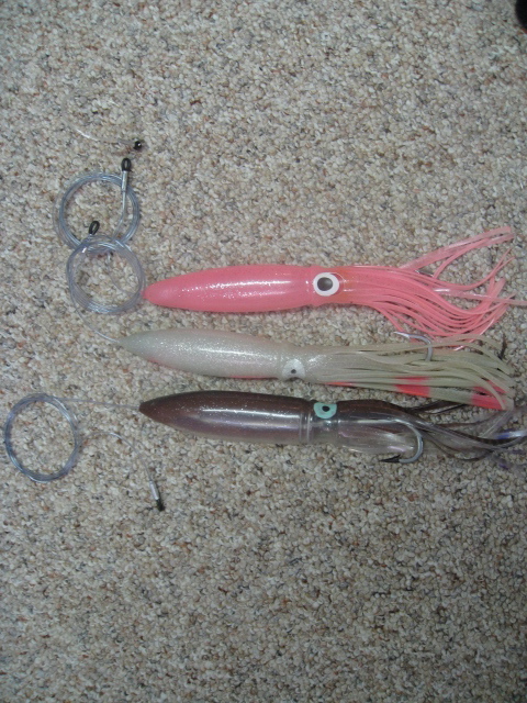 Also got some stingers rigged by Green Harbor Bait and The Hook Up. The ones w/ the grey leaders are weighted. All new/lightly used. See pics for colors. $10 each