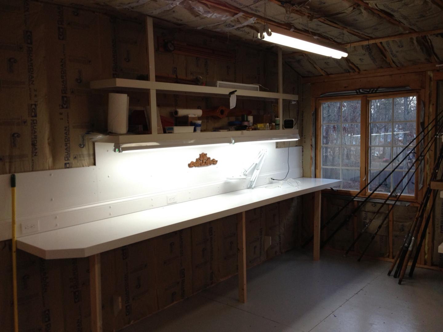 Thanks guys,,, I thought about the dust but just kept going,,, thinking about some kind of tent arrangement. Next phase is elec. ,,, plan on fluorescent strips under the lower shelf and probably another ceiling shop light.