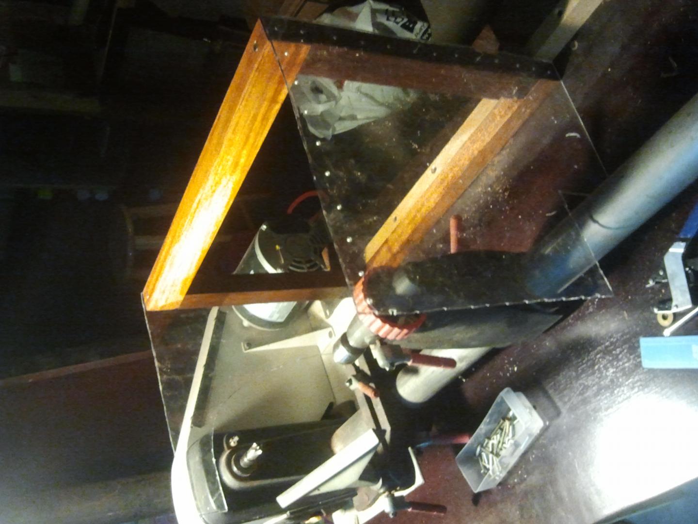 So I finally finished my dust hood for my lathe. She's not the prettiest girl at the dance, but she's all mine. Got the plexiglass for free from work. The wood skeleton for the hood is mahogany....it's all I had for hard wood. Anyway, hope you guys like it. The only piece that isn't mahogany is the rail...I didn't have a piece that long.