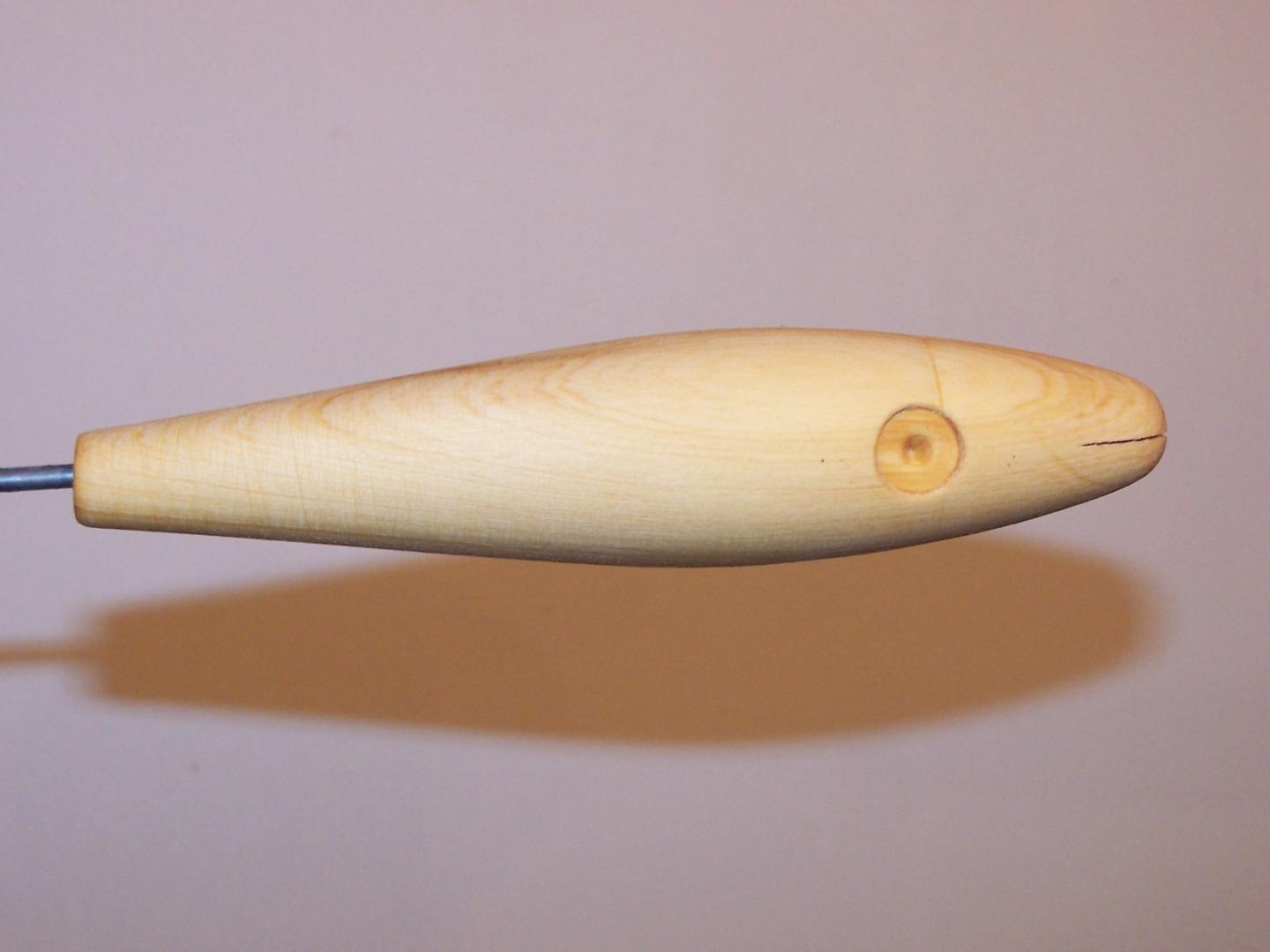 The darter has very nice wiggle. I tried a heavier weighting than just "00" and while the lure still swam well, it wasn't as responsive, so the "00" wins. The last time I made these they were in maple. While Frech made them from maple, and in the 6 5/8 model in the canal they caught fish, I know that just about everyone makes thiers from ayc. Using the same layout, weighting, minus the forward hook placement, using only one belly hook, I love how this ayc darter swims.