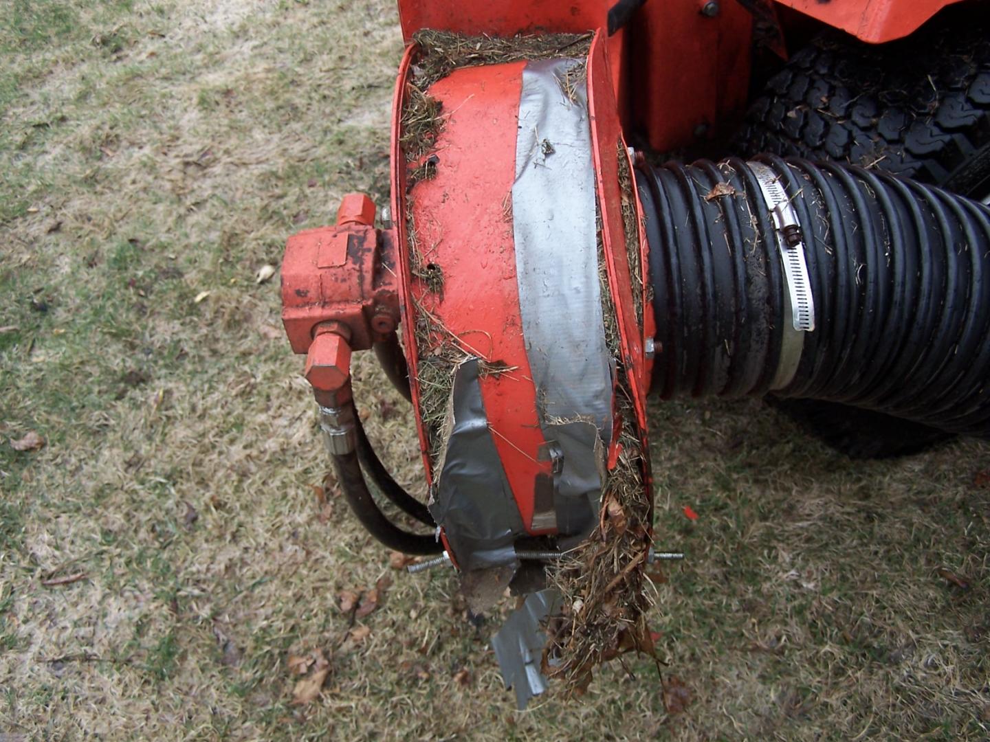 Ingersol 3014 tractor...........AS you can see in the second and third pics the housing for the hydraulic vacuum. The taped side is what is rotted. I bolted the sides together and it still works very well. That housing can be replaced. The parts can be bought. The hose is almost brand new that runs from the tractor to the hydraulic vacuum. I replaced the hydraulic pump about five years ago as well. The large arm that extends from the back od the tractor towards the vacuum comes off and the same bolts used to secure the arm with are use for securing the log splitter tyo the tractor.