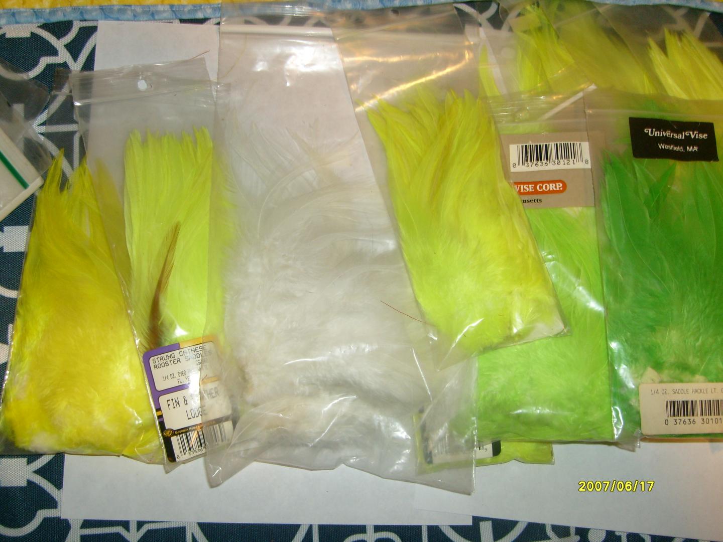 I will take the bucktails and one each of a yellow and green hackle, for an even $20.