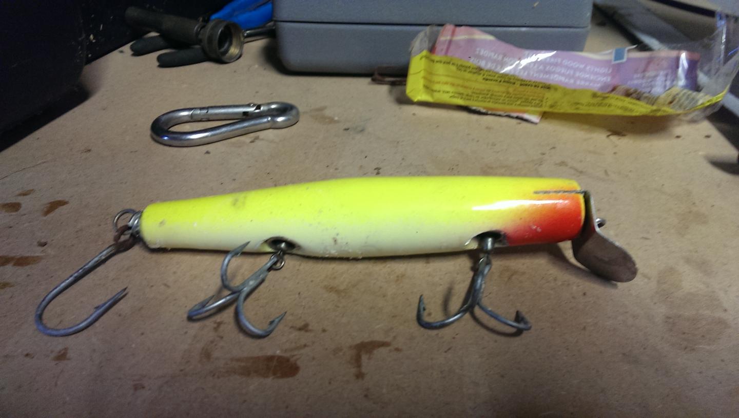 I got this one on a plug I got from Johnny in 2006, one of 3 plugs from when he first began making plugs. I modified it then with some weight in the belly, and yesterday I added some lines on the sides with a sharpie.