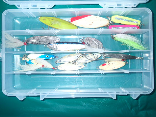 I will take from thread 2 the white squid all the tins except the big crimpled herring and the the 2 rangers and 2 smaller top water plugs next to them and thread 3 the 6 small rangers from the 1.00 box