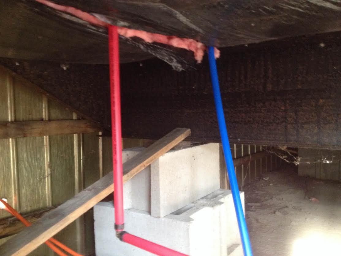 Last Friday she calls me to ask a favor, she needs the metal skirting where it is loose put back properly so animals don't get in under. So I go over there and pull back the skirt and also ask what is this pipe on the outside all about? It was clearly new. Underneath was a pile of trash insulation and junk he should have thrown away but the worst thing I saw right away was the water pipes down below the bladder and insulation of the home and also the trap. WTF, that crap will freeze in winter and now water to shower with and the trap will freeze and burst, nice job amateur. So I ask what was the reason the faucet and drain are now on the opposite end from where it was, and my father in law says Jerry said it will be easier for her to get in and out. OK, so you take that but I say not a reason at all, sounds like an excuse to me because he got a shower base pan with the drain on the wrong end or he doesn't know what the F he is doing. They have been smelling a stink outside and don't know why so the brilliant Jerry goes and pipes in this vent and brings in out thru and oversized hole and up the sidewall, total hackjob, illegal also. I am sure since swapping ends the new drain trap was not vented but I guess it still worked before he did the exterior vent, thanks for the hole thru the house #^&#^&#^&#^&wad!. The trap is completely wrong, it comes down too low and has an extra 90 in it causing it to trap the trap, a full S tarp is illegal. He also has 2" after the trap downsizing to 1-1/2" = totally wrong illegal.