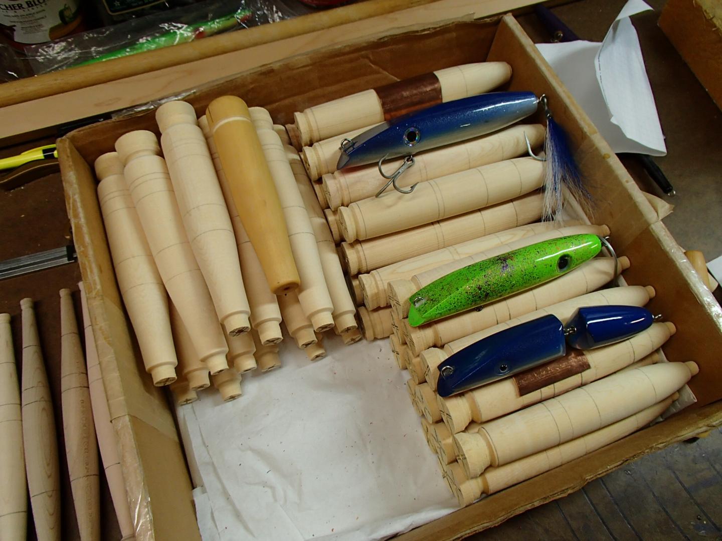 But I would still be interested in swapping master plug profiles, just as they come off the lathe, ends on and marked for eyes, weights, and hooks. I have a couple dozen spook bodies turned in same state for swap.