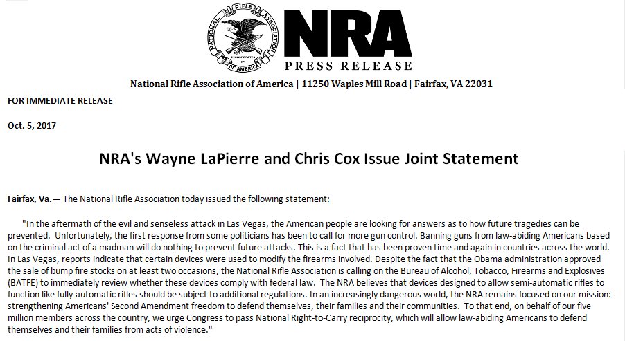 We can have a good debate on the Bumpstocks - in fact, the Evil NRA just released a statement that the Guv should look into if Bumpstocks and other methods to realize capacities closer to full auto should be banned. See attached.