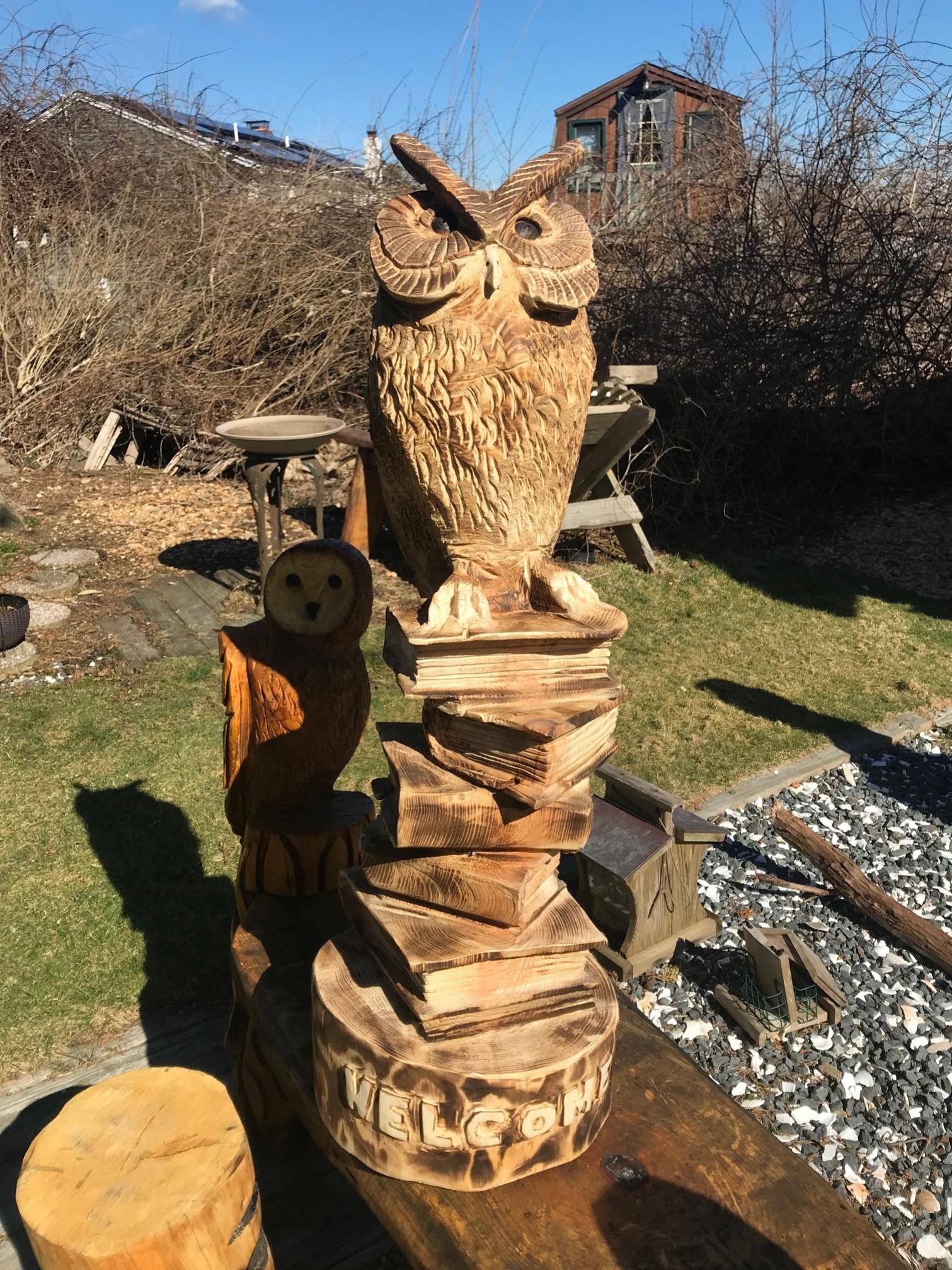 Took seven months but the owl finally found a new home, sometimes it takes awhile to find the right person willing to pay for the hours you put in. The striper relief carving is still available if someone wants that original man cave sculpture, maybe a few hints to your better half’s guys wink wink.