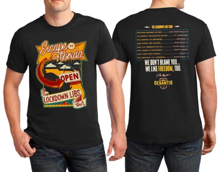 He’s Ron Desantis Americas governor. See attached it’s not cultists at all.. it’s perfectly normal 81,139 Covid Deaths but let’s own libs with a T shirt.
