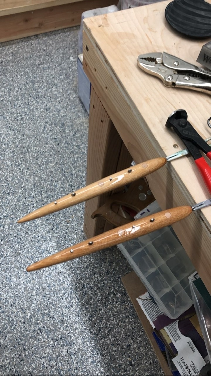 No through hole for cotter pin. Small screw eyes. Paul sent me his templates for it, and I made a couple.