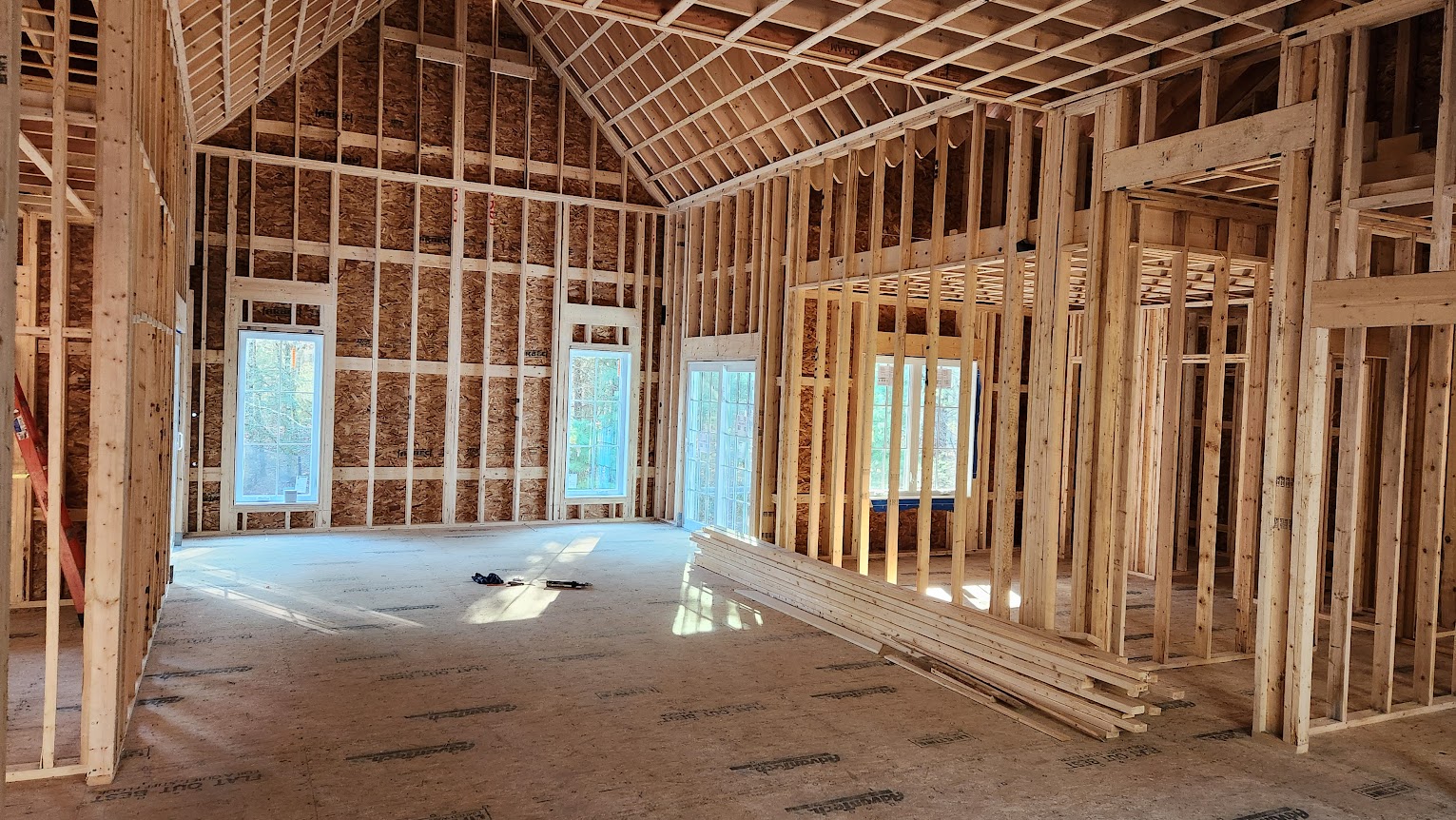 Not a fan of high ceilings.....heating a lot of unused volume. Gas fireplace going in the cathedral ceiling gable end