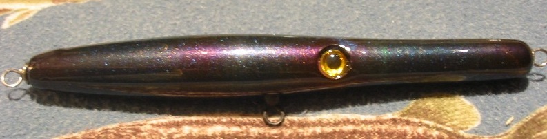 Hook and eye placement on needles, each builder has is own reasons, I guess. I have noticed a trend lately, to move the eyes, and belly hook more to the middle, as opposed to the more traditional front third of the plug. We all know what the sand eels looks like, and where the eyes are on them. I am attaching a photograph of an Atlantic Needlefish.