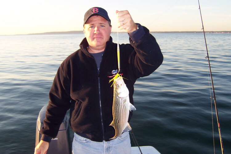 Professor - Elmo and I went fishing this morning in Plymouth/Duxbury bay. He decided to put on the "deadly #^^^^& type lure" he got from you. 1st cast fish on. I'll post a pic tonite.