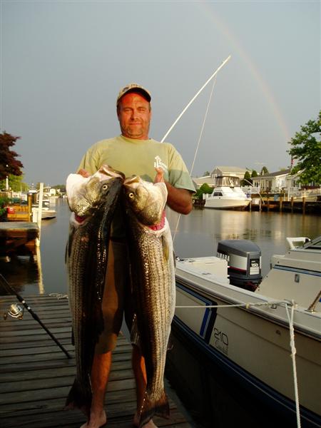 Thats awesome Gary, we do need to wet some plugs. I'll be fishing in North Carolina next week and I'll send some bass north so we can get em. Everytime I see your little guys I think of that day. Below I have a couple of pics from that day. Notice your Intiser hanging, I had to stick it back into the fish, it was so nasty while fishing I couldn't get a desent picture. But as we reached the dock the sun came out and the wind stopped, A rainbow showed off to make this day more memorable. Talk to you soon Bill