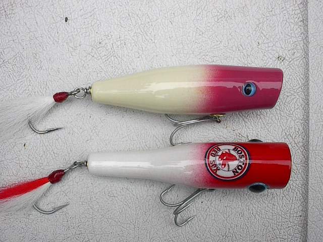 heres some looong pencilpoppers and a cuttyhunk water sled , they all catch