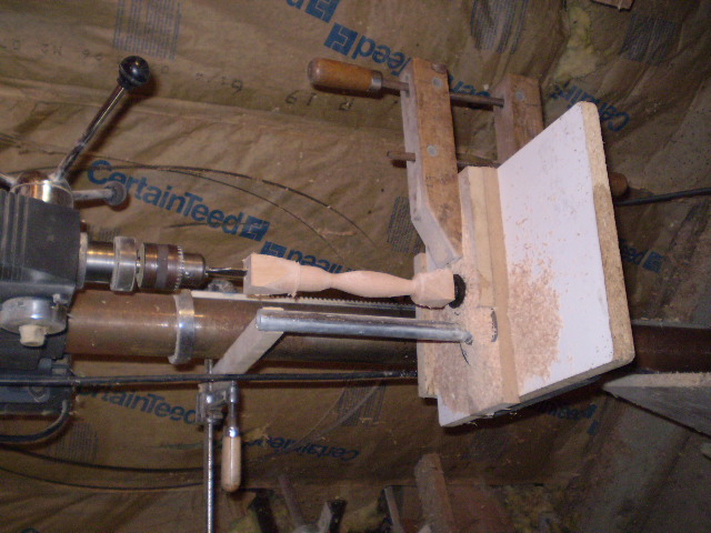 The live center is made of parts from the local hardware store.