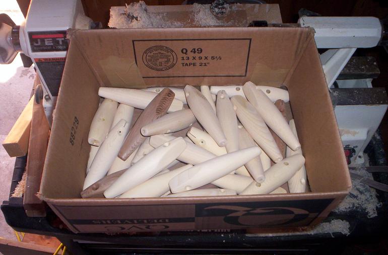 I'm where JPI was yesterday, wood all spun and machined waiting for sealer. Put'em on the back burner so's I could get something done for PlugFest. PlugFest plugs are in primer  Shakin' it boss, I'm shakin' it!