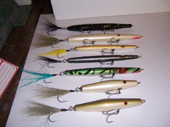 Pikie is 2 oz, Danny is 2 3/4 oz, Pencils are 1 1/2, 2, and 2 3/4 oz. Getting ready for Rhody in a couple of weeks  Bluefish fodder  Soooo, what you guys got