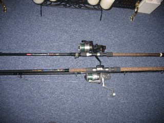I have a really old St. Croix 13' looks like it is brandy new, has a almost new mitchell 302 on it, both are at least a 9 out of 10, maybe trade for the 4500 and both rods, this thing is light and fast, with a dunkable reel on it, I'll be in RI on Sun the 7th if you want to see it