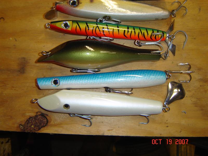 Just so everyone can either let this go or get REALLY tweaked... I bought them. I plan to fish them eventually. I sold one, the parrot mackeral with the little propeller, whatever that's called, because it didn't seem to be through wired. I have no clue who made them or what they are worth. They looked nice and the price seemed reasonable, but I only thought that because they all looked hand made and I have been trying to use customs and phase out stuff I get in the store, except for Don's great Afterhours stuff and Superstrikes. As far as DIBS and First Shots and all that crap, I hope the guy that posts the first "I'll take 'em" is always the one who gets 'em... like I did. I also hope that if I see another batch of plugs for sale here or anywhere else and I like them enough to buy them at the asking price that Dibs won't mean diddly....