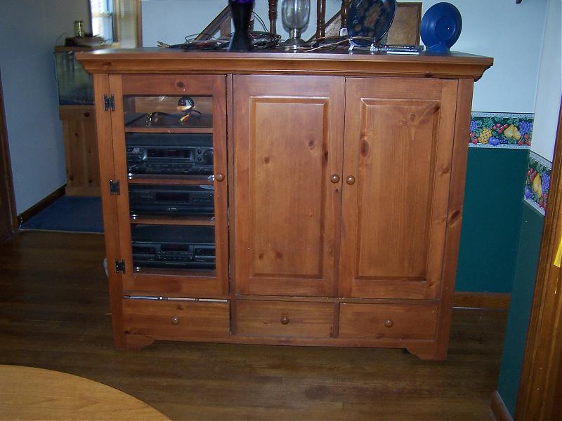 51" high....22" deep..61"wide....TV area..31 1/2 " wide..28" high..19 1/2 " deep......3 drawers on the bottom..4 shelves on the l/side with glass door for components...It is on wheels also
