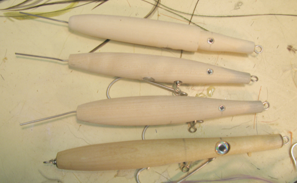 The squidy one has potential. It can be twitched and made to glide pretty nicely. The next one down swims by itself hanging in current like a fish hovering in the water as well as twitching and gliding. The third one down seems dead by comparison. The big one has potential, but I think I'm going to try shifting the shoulders forward to match the smaller one that swims and glides.