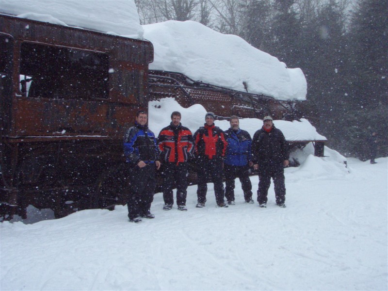 Well got back yesterday and the pics speak for themselves. Drove up with no sleep after work Friday. Got to Jackman at 6am and it was pouring. Gassed up with 100 bucks for the sleds and trucks and sat in the rain pondering why. Just as we were going to take a nap I heard the tell tale signs of sleet. All of a sudden it turned to snow and for the rest of the day it snowes. A few minor areas of drizzle but all in all we got about 3 inches of snow. First 2 are one of many moose we saw that wouldn't leave the trail. The 2nd is the border cut with Quebec. Still 4-5 ft of snow off trail. Hardly saw any dirt or rocks. Snow is really soft and wet in the afternoon.