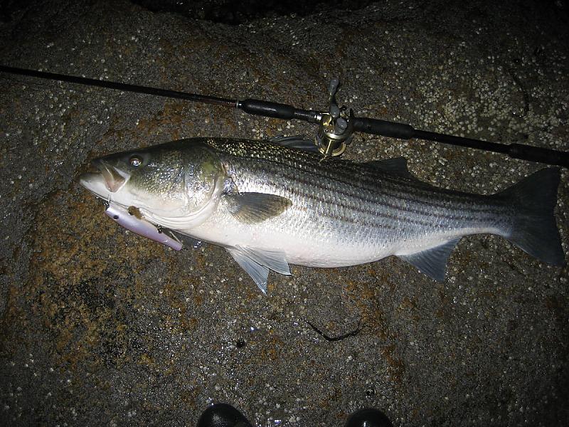 Here's a picture of a nice fish my dad got last night. We only get to fish together about 10-15 nights a year so we hit it pretty hard when we get the chance. We covered a lot of ground the past 2nights, falmouth to plymouth. We ran into Cranium at one spot this am.