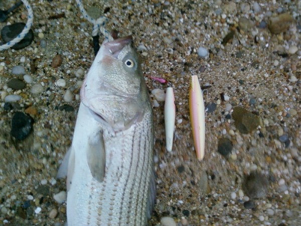 "Throw plugs like we do that will cause them to suffer humility. Pogies make any fisherman look good when bass are around. Bait is easy."