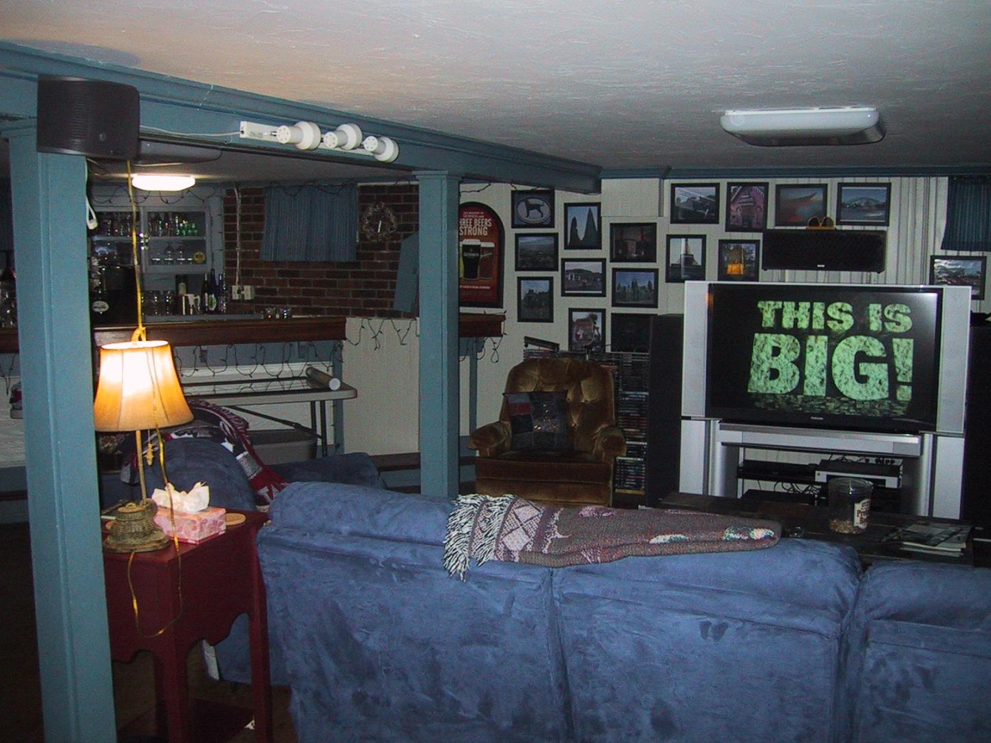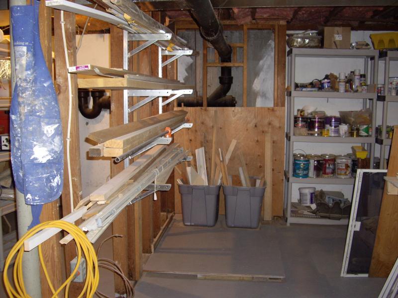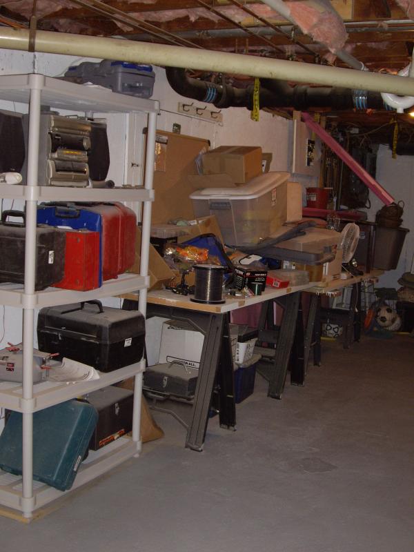 Here are a couple of pics of my caves. The first pic is my indoor cave. It is the room that is under an addition to my house. It is a good size room, about 16x24 and as you can see nicely organized  It is where I store all of my rods, reels, plugs and my fresh and saltwater collection. The pic only shows a small part of it, but the rest is the same. It is on my list to get cleaned up later this winter so I can work on plugs and stuff in there, and display all of my stuff properly. I haven't done much work down there because of the mess plug building makes but I just got the big dust collector from jet so I may give it a shot.