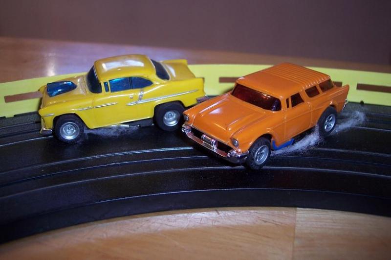Lets race!! Here is my set....I still got it! My favorite car was always the yellow 55 Shoebox! I can see them heading into the turn now! Best part....it still works and I have all the parts!