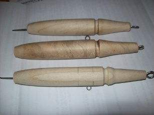 Don't over think a skin needle's construction. A straight piece of dowel with a weight each end and a skin over it will fish just as well.