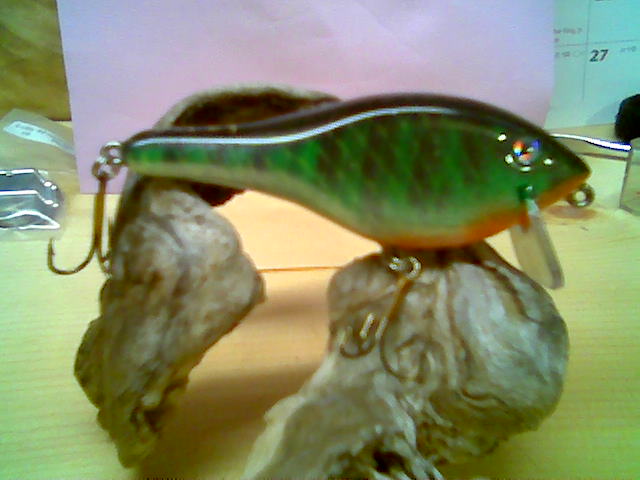 First attempt with the new airbrush I got from Santa. A little sweet water perch that I hope the smallies on Champ will crush. 4.25" at 1oz.